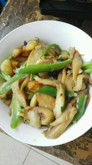 盛出土豆后倒入茄子加入蒜片炒,炒到快熟后加入煎好的土豆和青椒,再炒2分钟加入盐和鸡精,搞定~