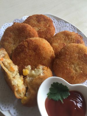最后只需炸或煎成金黄色就可以了。土豆泥和里面的料都是熟的了,也不需要炸太久,只需将外皮炸至酥脆就可以了,这样才会很好吃~