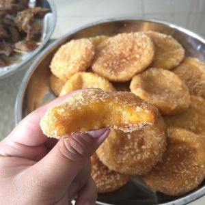 把南瓜蒸熟捣成泥!待冷却后加入糯米粉和白糖!按自己口味加糖!