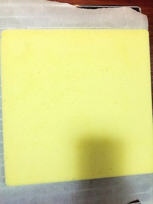 倒入铺了油纸的烤盘中,震几下后放入预热好的烤箱中160度烤19分钟