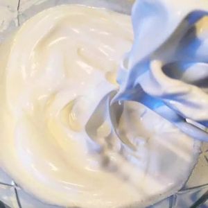 取蛋白的碗,加入三滴香草精,高速打,边打边加白糖。