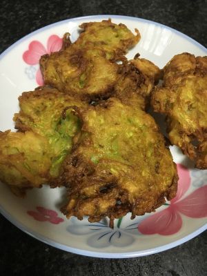 最后一步,平底锅放适量花生油,慢火,把南瓜饼放入锅内稍等有饼变黄色再翻另一面,注意动作要轻