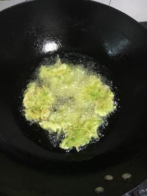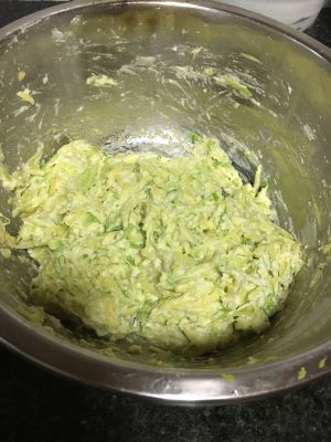 把南瓜刨成丝,用盐腌出水来,然后放少量面粉