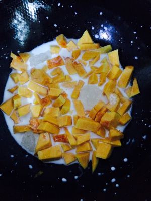 南瓜去皮切丁➕牛奶➕糖 多少看个人口感。 煮沸后即可出锅