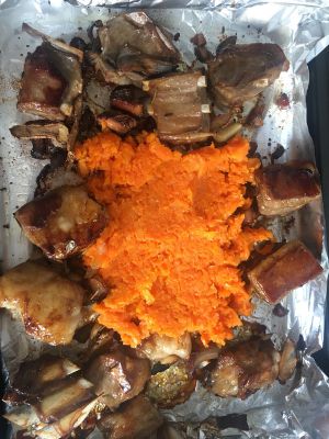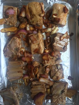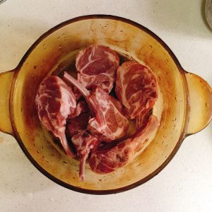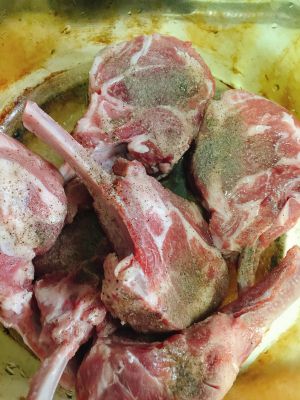 腌制:焯水后的羊排加入调料(海盐、辣椒粉、孜然粉、生抽、料酒、白糖、洋葱、姜片、迷迭香(没有可不放)、蒜头(忘记放了)涂抹均匀后放入冰箱冷藏30分钟(更入味,不冷藏也可以)