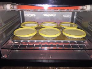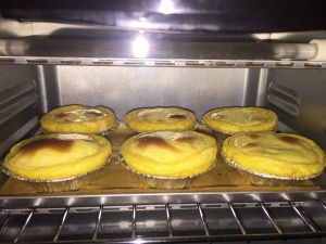 结束后不要马上将蛋挞从烤箱拿出,可以用余温再加热两三分钟,效果会更好