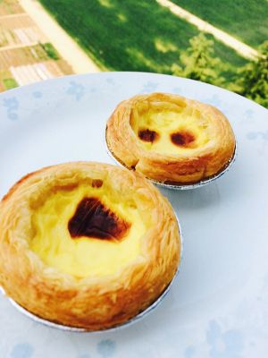 把蛋挞液倒入蛋挞皮大约8分满,200度烤制15-20分钟,蛋挞表面有黑斑就差不多了(我是先200度上下管加热十分钟,然后上管215度5分钟)
