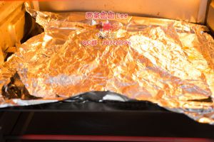 烤盘垫上铝泊纸,从香料水锅内将羊排捞出铺在烤盘上,蛋糊液刷在羊排上。撒上孜然粉,盐和百里香碎。再盖上一层铝泊纸封住香气和汁水。