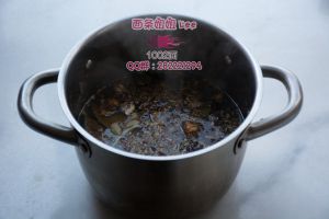 锅内加水,加入八角3个、花椒1小把、桂皮1小块、丁香5个、小茴香1小把、香叶5片煮20分钟。