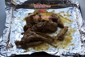 把锡纸放在烤盘上,把羊排和腌渍的调味姜洋葱平铺在上面,汤汁不要了,上面盖一层锡纸,烤箱预热一下,羊排放中层,上下火210度30分钟,拿出倒掉汤汁,去掉上层锡纸再入烤箱中层烤20分钟,然后拿出倒掉汤汁