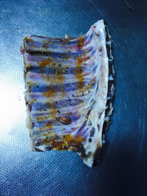 专用的烤肉料均匀涂抹羊排,生抽,蚝油,适量涂抹。保鲜膜覆盖,放冰箱4小时以上。我是隔天烤的,时间比较充裕。