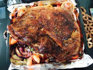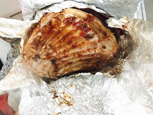 将腌制好的羊排上的洋葱,大蒜去掉,用锡箔纸包好,烤箱200度烤60分钟(时间和温度要根据烤箱的品牌和羊排的大小而定)。