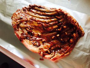 烤盘入烤箱中层,上下火180度火烤50到60分钟基本就熟了。