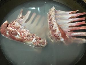 小羊排,用水浸泡,直至羊排的血水浸泡干净(整个过程至少要换三次水)。