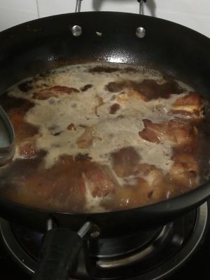 感觉汤汁快收没时,倒入少许米醋和老抽,做最后的提味上色。