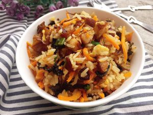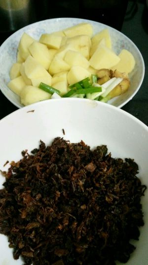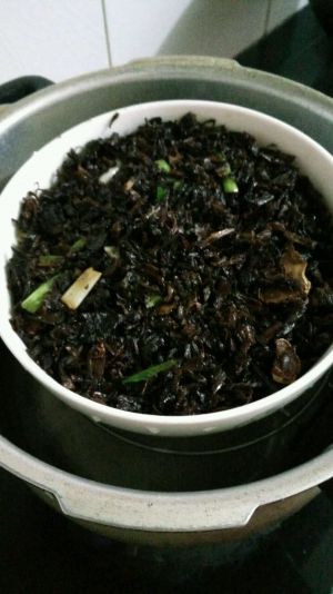 梅干菜过水两遍捞起备用,不可泡水过久,泡水后的梅菜香味会流失,还会发酸。