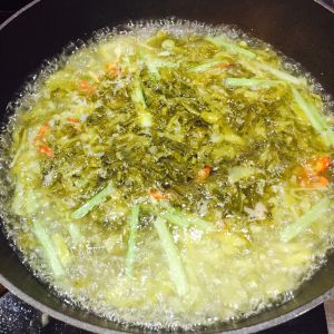热油加入姜蒜、酸菜,炒出香味后加热水熬煮。