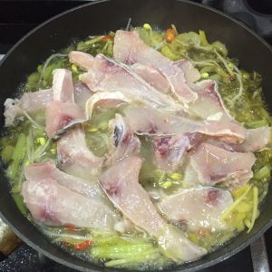 加入腌制好的鱼块,盖上锅盖继续大火煮3分钟左右