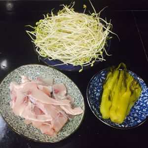 鱼腩切片用花生油、胡椒粉、生粉抓腌一下。酸菜泡水10分钟切碎挤干水分。豆芽洗净备用。