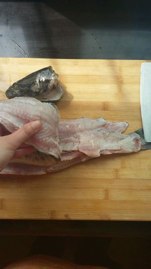鱼头、鱼骨、鱼肉分好后,切鱼片