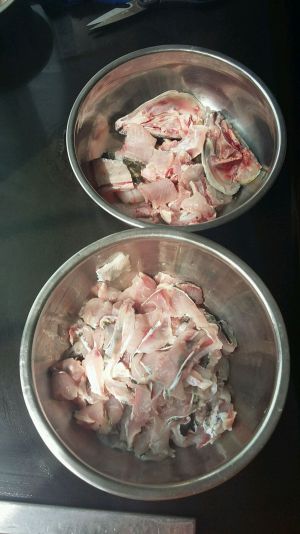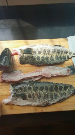 1.黑鱼500克洗净,去鳞片,卸鱼头鱼尾,去除鱼翅备用。