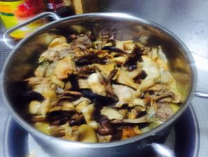 加入蘑菇,滚开后,根据个人口味,调节一下咸淡…(炒锅不够大,换了汤锅…)