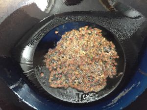 鱼腌制20分钟左右,锅里油温热的时候放入红99和豆瓣酱小火翻炒出红油!
