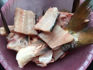 这是剩下的鱼边料,不要浪费了,可以煮汤,也可以放在水煮鱼的汤里煮!