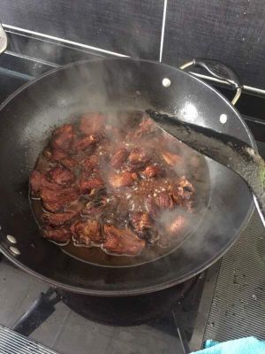 排骨下锅,加入盐,生抽(一定要生抽哦),八角,耗油,李锦记红烧汁,加水大火烧开收汁即可。