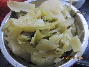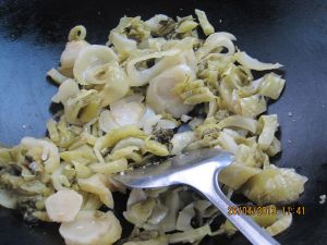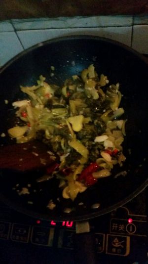 把刚才的佐料还有酸菜放入一起炒。(油要多点)
