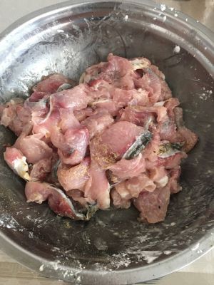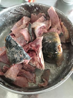 鱼骨,鱼头劈开单独腌制,料同鱼片,我同时还做了口水鱼片,所以有两条鱼的鱼骨
