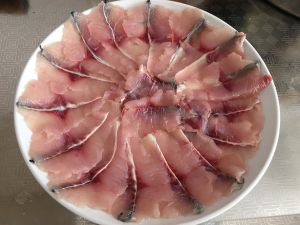 鱼去骨切片,切薄一点点,不过用的不是双立人的刀透明不了哈哈。