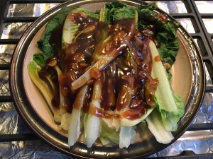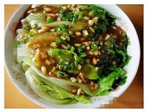 生菜焯水捞出控干水分摆盘淋上酱汁即可