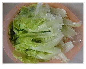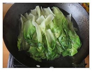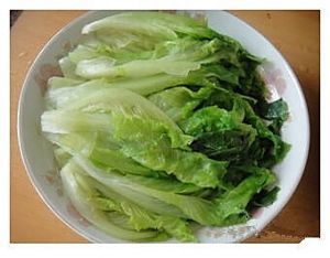 生菜洗净凉水泡置,锅内烧开水后放入一小勺盐(有效保持生菜色相),将生菜在开水中焯二十秒
