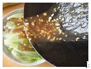 最后一步将锅内的酱倒入刚才盛出来的生菜上,大功告成