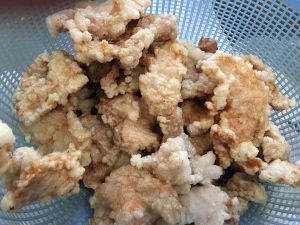1炸到稍微有点金黄色,并微微有些硬,就捞出来! 全都炸好了之后在将油烧得更热一些,然后将所有肉片从新来一次,这一次是为了更脆! 等待敲打肉片发出卡卡的香脆声音就马上捞出,炸大劲就玩犊子了不好吃了