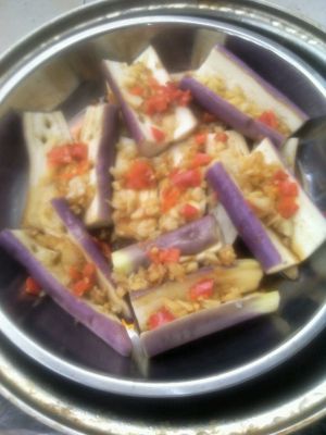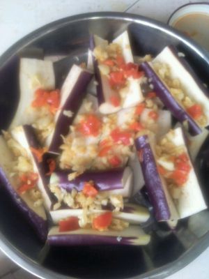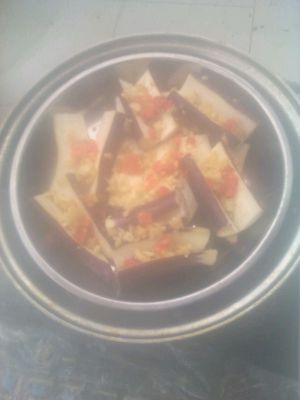 将茄子放在盘里,上锅隔水蒸15分钟。