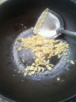 锅内放少许油,小火将蒜末炒香,留在锅里。