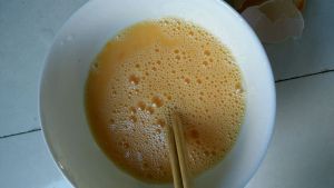 鸡蛋打蛋液,丝瓜去皮切滚刀,小葱切葱花