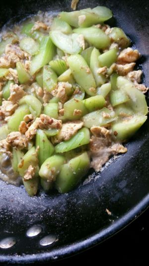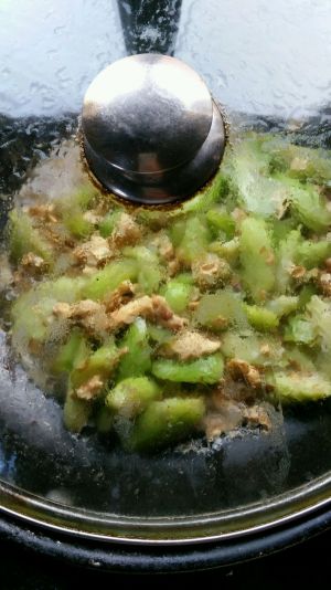 盖上锅盖,焖三十秒左右(目的让丝瓜熟)