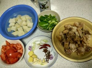 准备好食材,葱、蒜切末 土豆、胡萝卜、青椒、洋葱切小块
