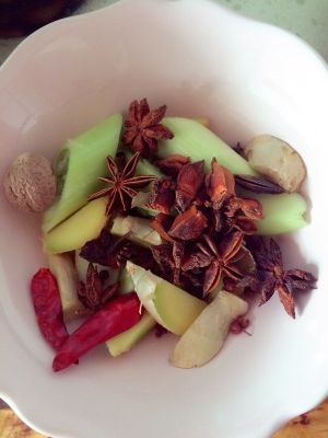 炖肉调料 葱段姜丝 花椒大料 丁香 肉蔻 辣椒