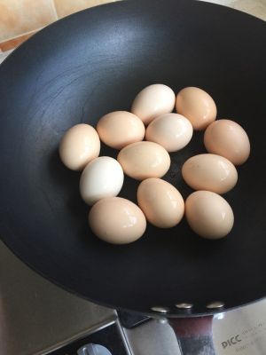 先把鸡蛋一颗颗洗干净,倒入淹没鸡蛋就可以的水用中火煮十五分钟,煮好后热水倒掉放冷水冷却,鸡蛋冷了后用汤勺之类的把蛋壳敲出裂缝,想入味可以多敲几个方位