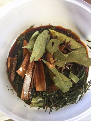 凉水下锅,放香叶,八角,茶叶,桂皮,盐,