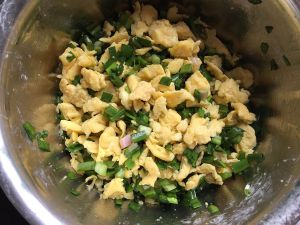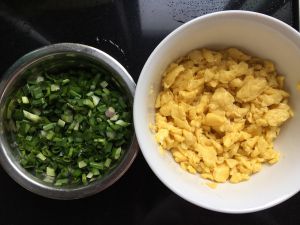 鸡蛋打散炒碎,韭菜切末