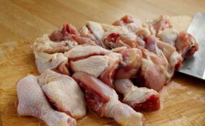 大葱,辣子,土豆,洗净切断备用。 将剁成块的鸡肉,让入冷水中,在锅内烧开,撇去浮沫,捞出备用。
