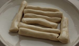 然后揉光滑,搓成长条,沾抹上油,蒙上保鲜膜,继续醒,至少30分钟