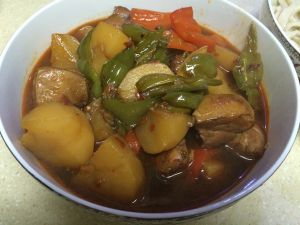 加入切好的土豆,滚五分钟左右,再加入甜椒、胡萝卜继续10分钟左右。