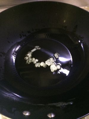 热锅冷油,加入大蒜、生姜、桂皮、八角、冰糖翻炒。