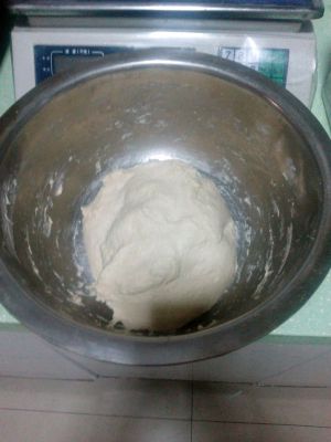 把所有材料放入盆内揉成团,盖起来醒20分钟。